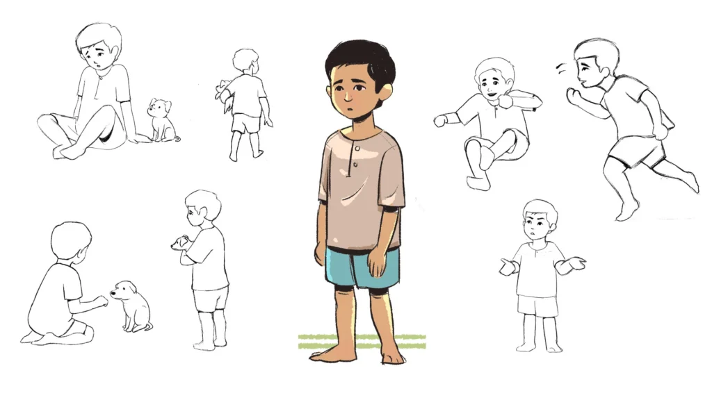 2. Character Sketching: Once the conceptual phase is complete, we begin sketching out initial ideas. These rough drafts are presented to clients for feedback, allowing us to fine-tune the character’s look before moving to the next stage.