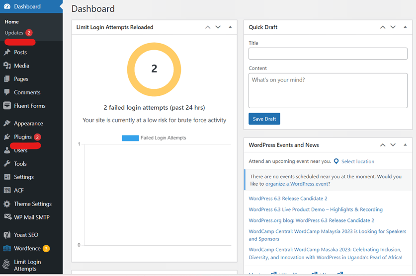 2. Hacking Attempts: Unauthorized access attempts by hackers aiming to exploit vulnerabilities in WordPress core, themes, or plugins.